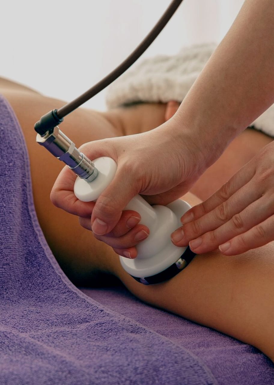 [筋デトックス] -「ミオドレナージ」 - ミオドレナージとは、筋肉の走行に沿って行う強めのマッサージセラピー。硬く大きくなった悪質な筋肉を刺激することで余分な脂肪を除去し、代謝を改善します。